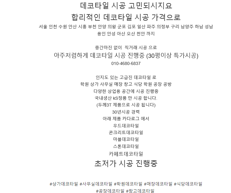 사무실, 상가, 상가, 학원, 작업장, 바닥재, 장식타일, 건축 등을 합리적인 가격에
